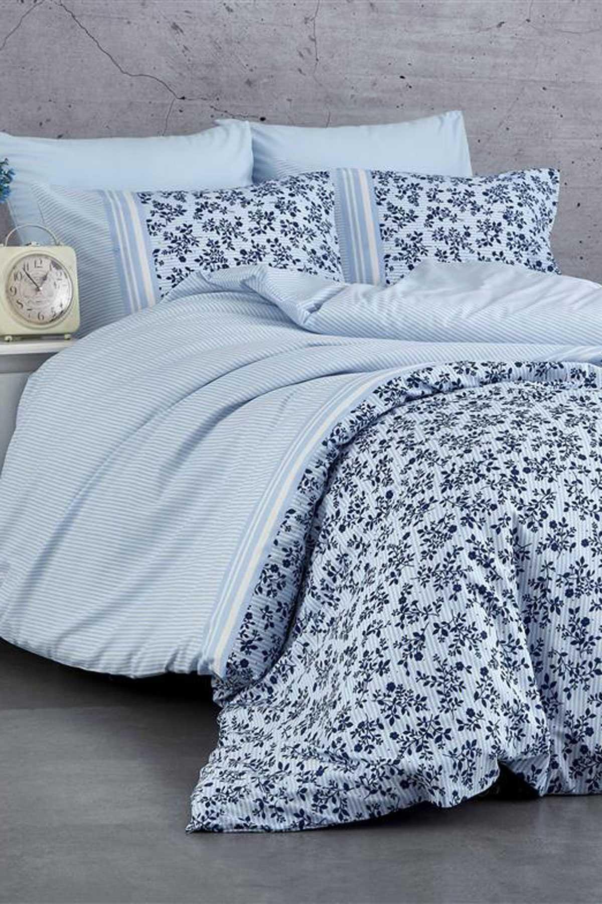 Takım, 200x220 cm boyutlarında nevresim, 220x240 cm boyutunda çarşaf ve 50x70 cm ölçülerinde 2 adet yastık kılıfı ile komple bir yatak takımı oluşturur.