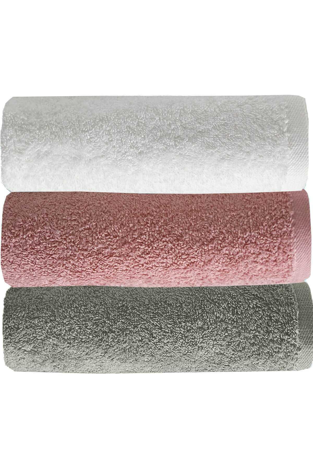 3'lü Düz Renk El Yüz Havlu Seti – %100 Pamuklu (50x90 cm) Gri-Gül-Beyaz