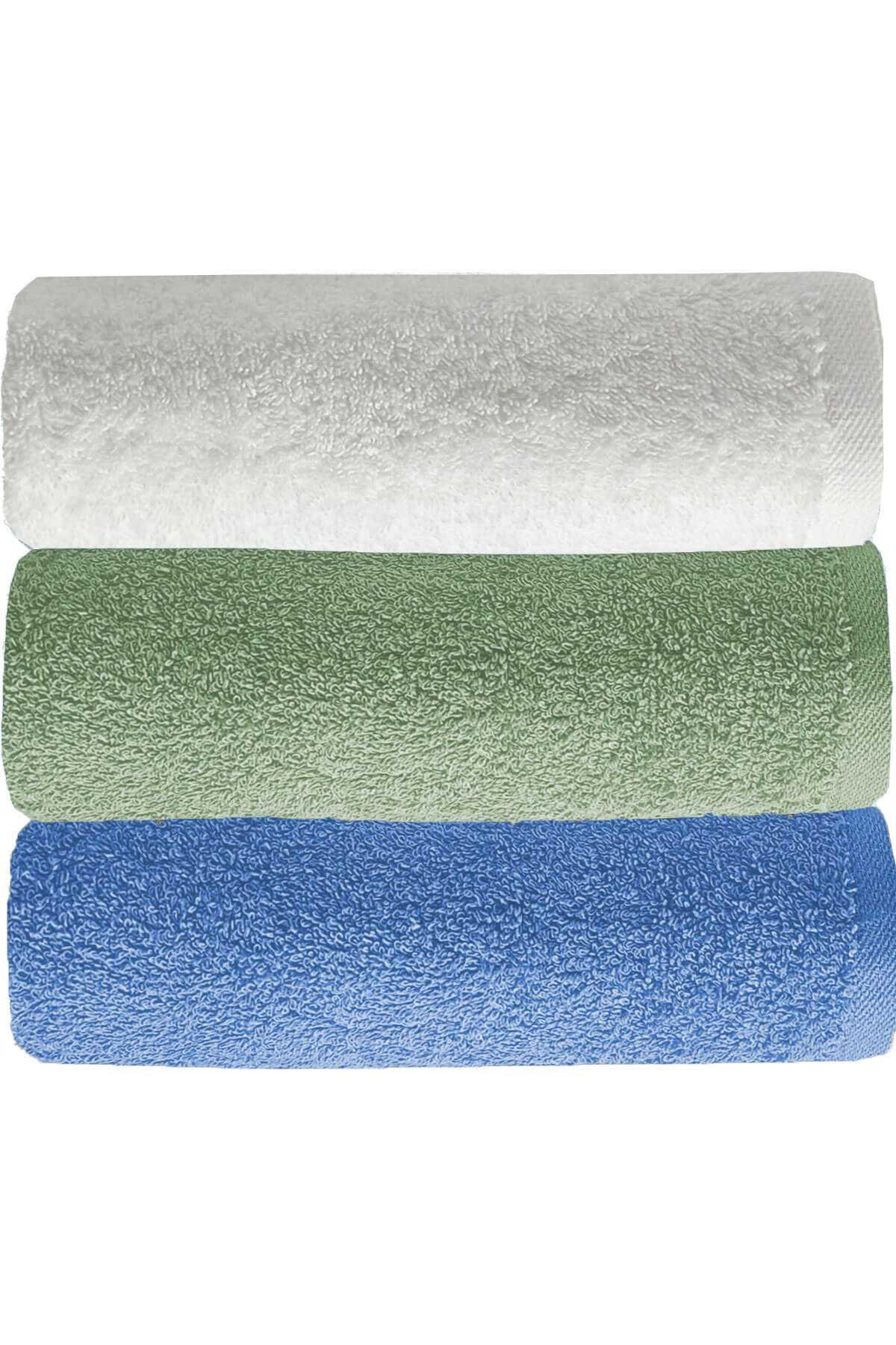 3'lü Düz Renk El Yüz Havlu Seti – %100 Pamuklu (50x90 cm) Mavi-Yeşil-Beyaz