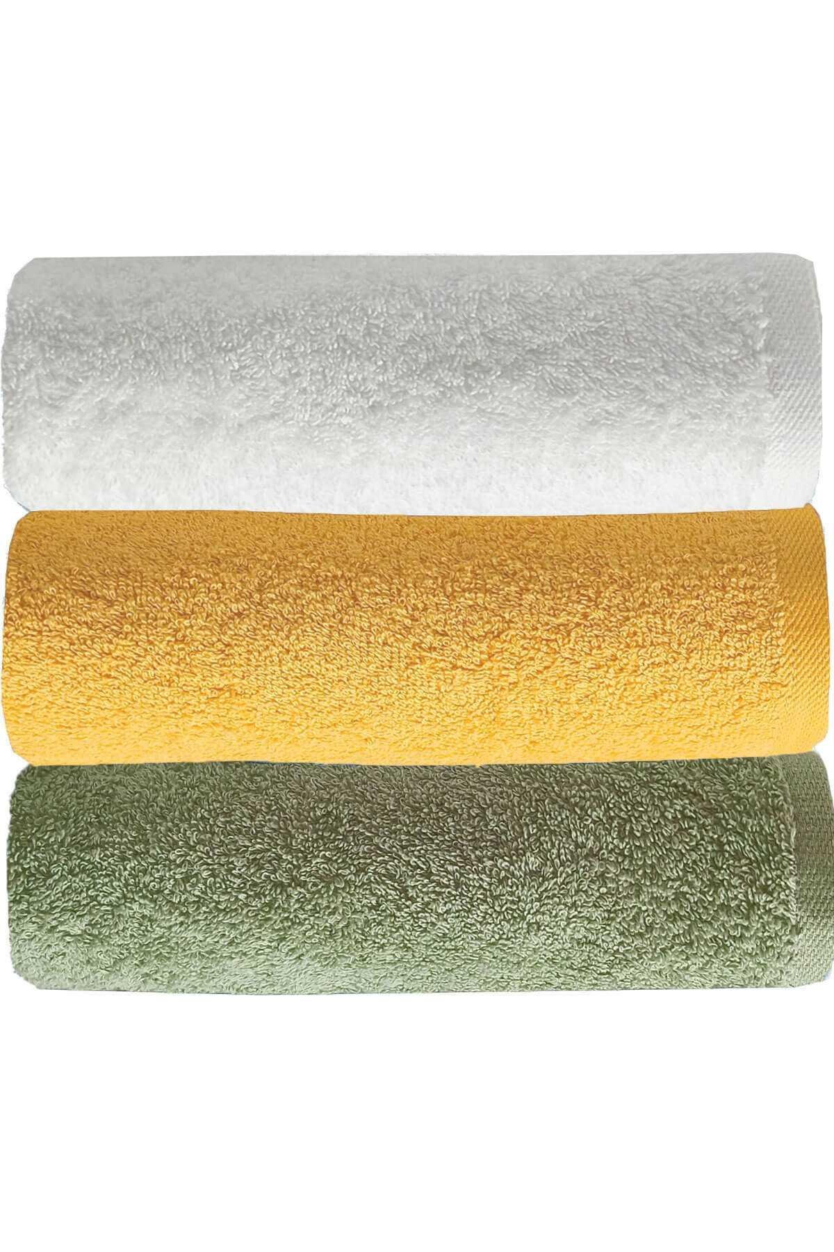 3'lü Düz Renk El Yüz Havlu Seti – %100 Pamuklu (50x90 cm) Yeşil-Sarı-Beyaz