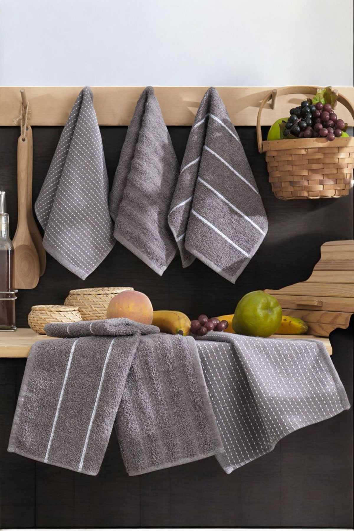 6 lı Luna Naturel Mutfak Havlu Seti %100 Pamuklu 30X50 Cm Antrasit