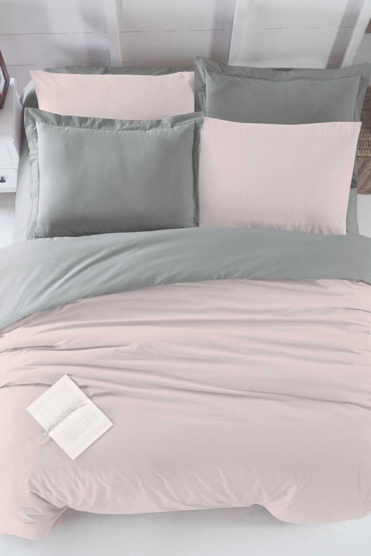 Çift Kişilik Lastikli Çarşaflı Nevresim Takımı Pamuklu Four Season Pudra Gri