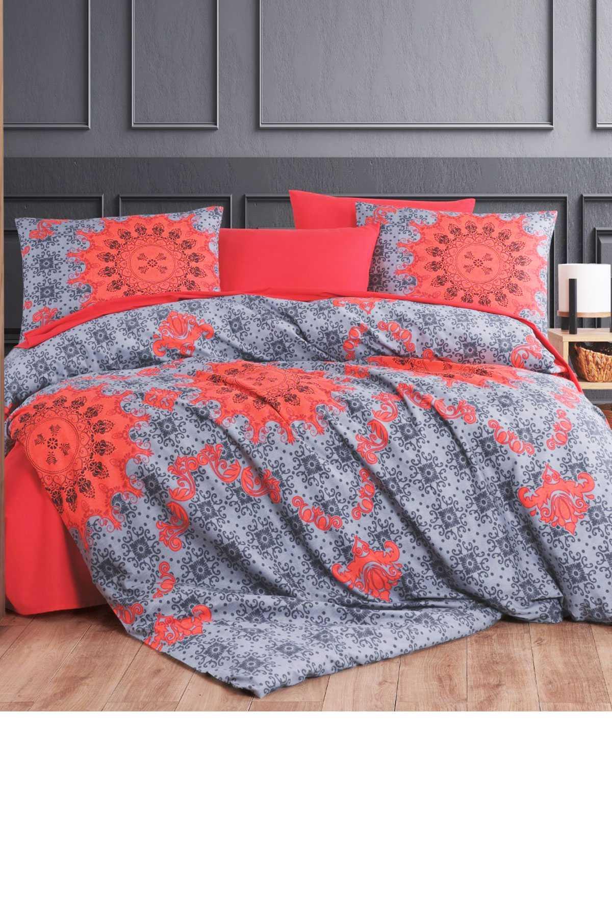Çift Kişilik Nevresim Takımı Pamuklu Asil Kırmızı