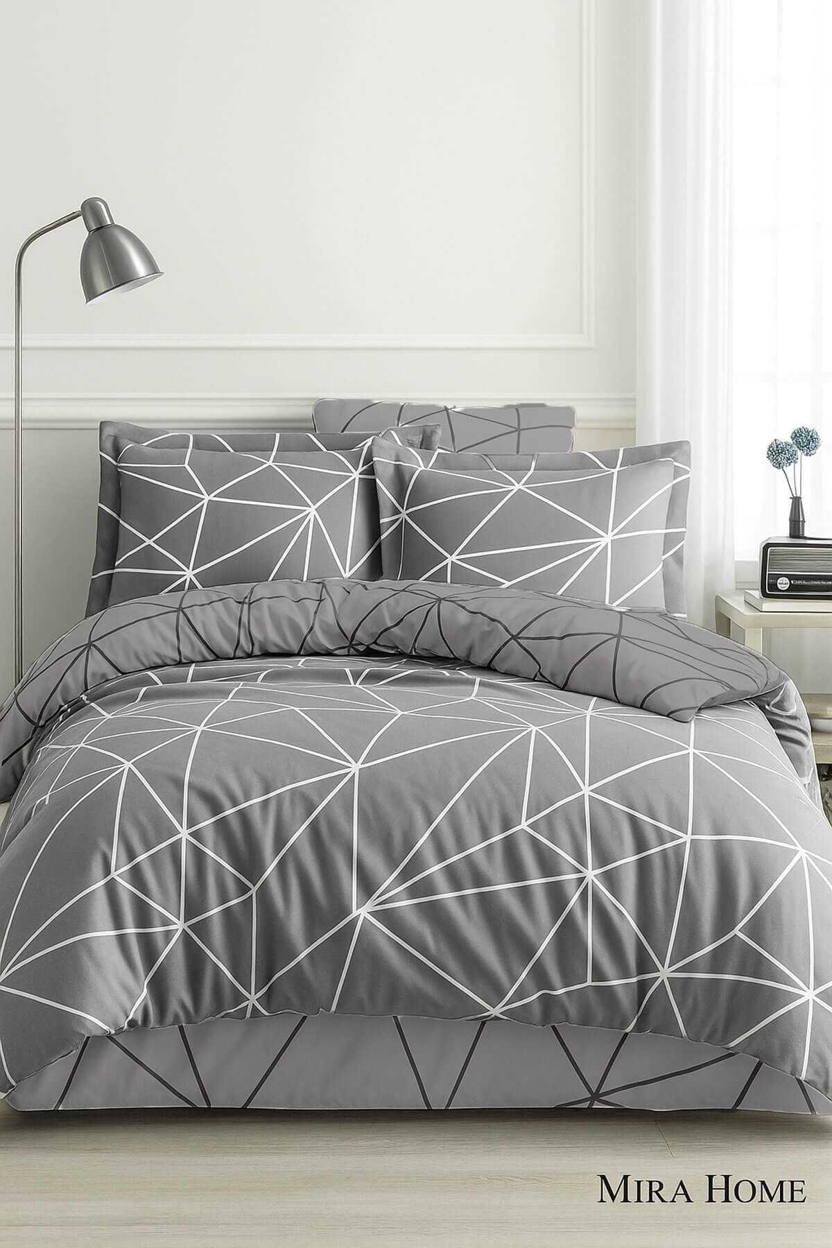 Geo Line Gri Çift Kişilik Nevresim Takımı
