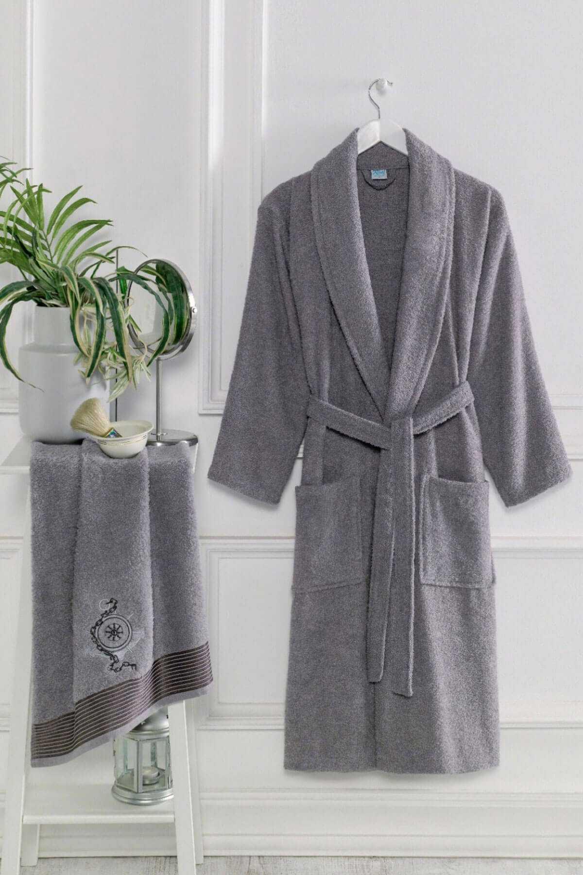 Erkek Havlulu Banyo Bornoz Takımı %100 Pamuklu Antrasit