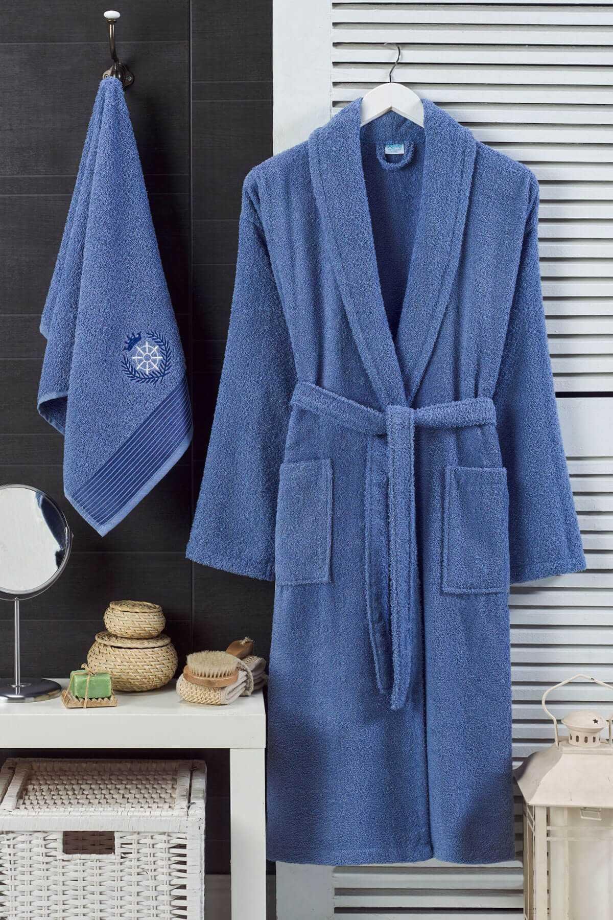 Erkek Havlulu Banyo Bornoz Takımı %100 Pamuklu Lacivert
