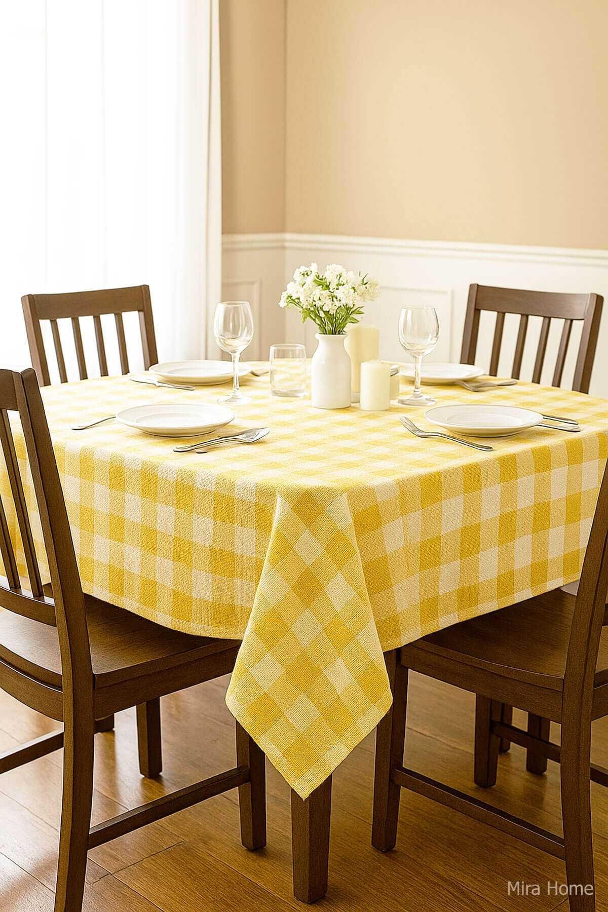 Fiber Kareli Masa Örtüsü Sofra Bezi Ekose Desen 160x160 Cm Sarı